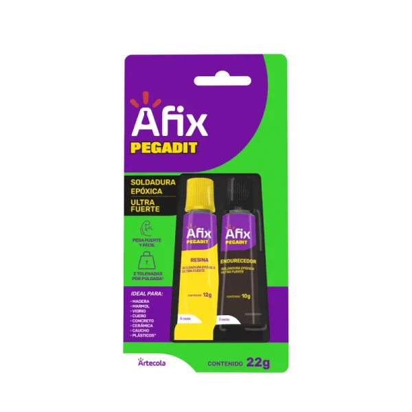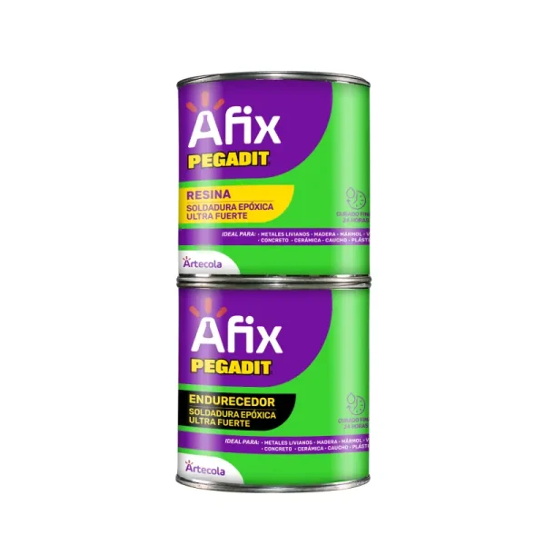 Pegadit Soldadura Epóxica Ultra Fuerte, adhesivo de dos componentes (resina y endurecedor) de alto desempeño. Permite pegar materiales como madera, hierro, aluminio y algunas aleaciones, caucho, acero, mármol, concreto, vidrio, cerámica, en diversas industrias.
